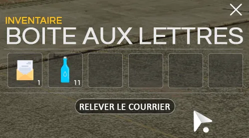 Chaque logement est équipé d'une boîte aux lettres permettant de recevoir des courriers ainsi que des colis. La boîte aux lettres se présente sous la forme d'un inventaire accessible uniquement au locataire d'un logement et dont on ne peut que retirer les objets.